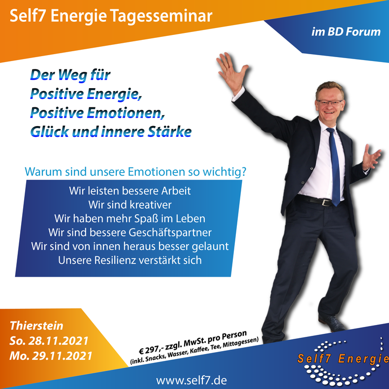 Das Self7 Seminar für Positive Emotionen wird Ihr Leben auf eine neue Stufe stellen.
